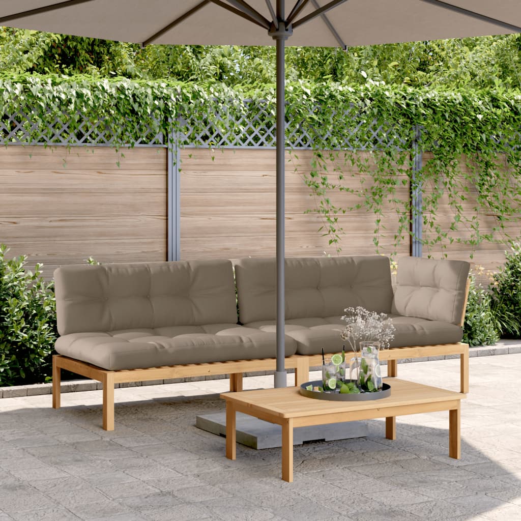 3 pcs móveis de paletes p/ jardim c/ almofadões acácia maciça