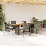 7 pcs conjunto de jantar p/ jardim c/ almofadões vime PE cinza