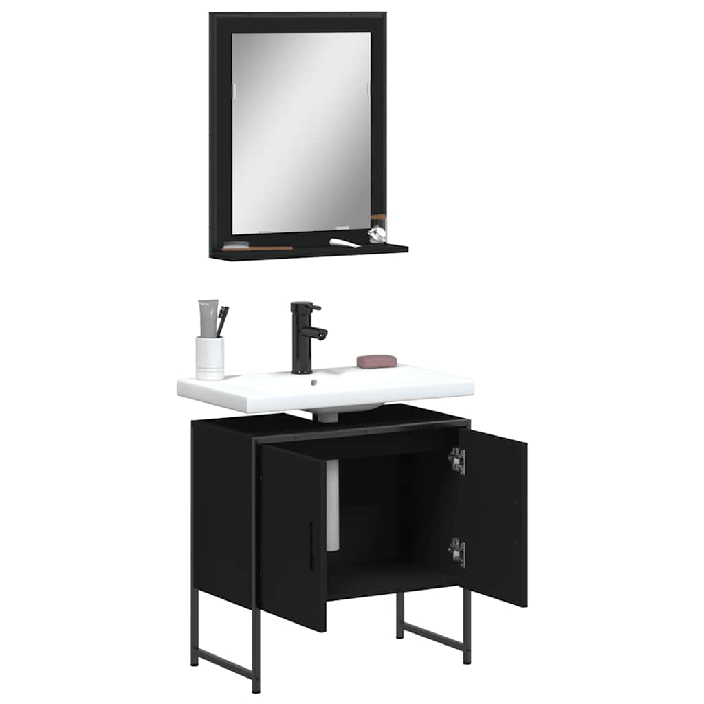 2 pcs conjunto móveis casa de banho derivados de madeira preto