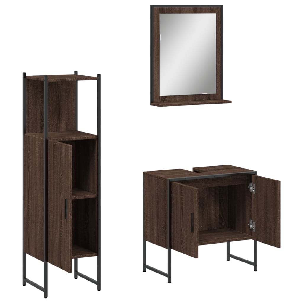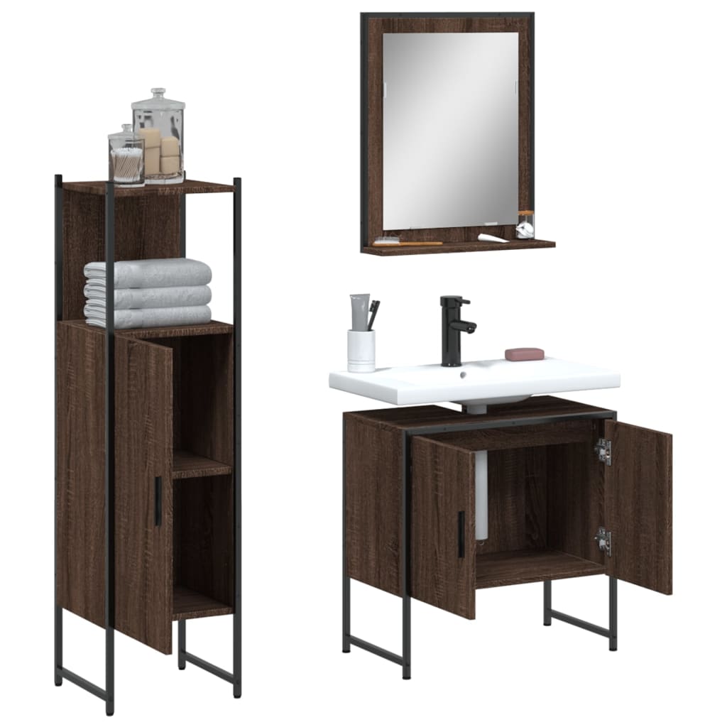 3 pcs conjunto móveis WC derivados de madeira carvalho castanho