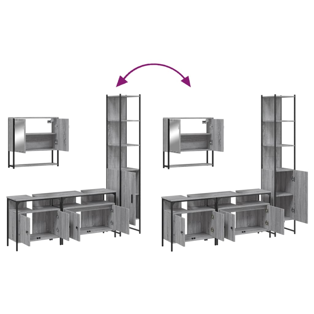 4 pcs Conjunto móveis casa de banho madeira proc. cinza sonoma
