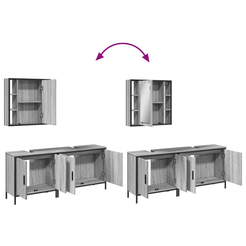 3 pcs conjunto móveis WC derivados de madeira cinzento sonoma