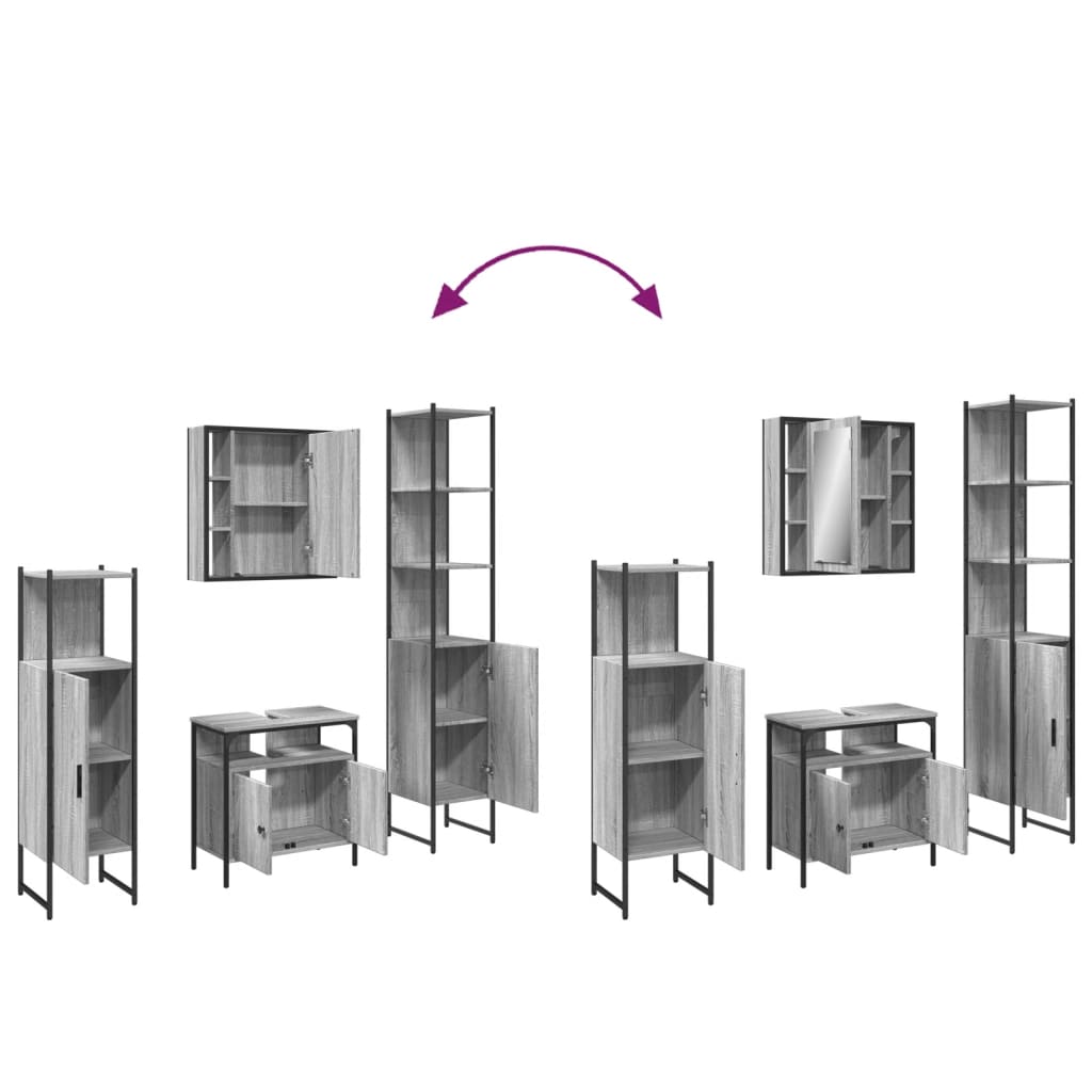 4 pcs conj. móveis casa de banho derivados madeira cinza sonoma