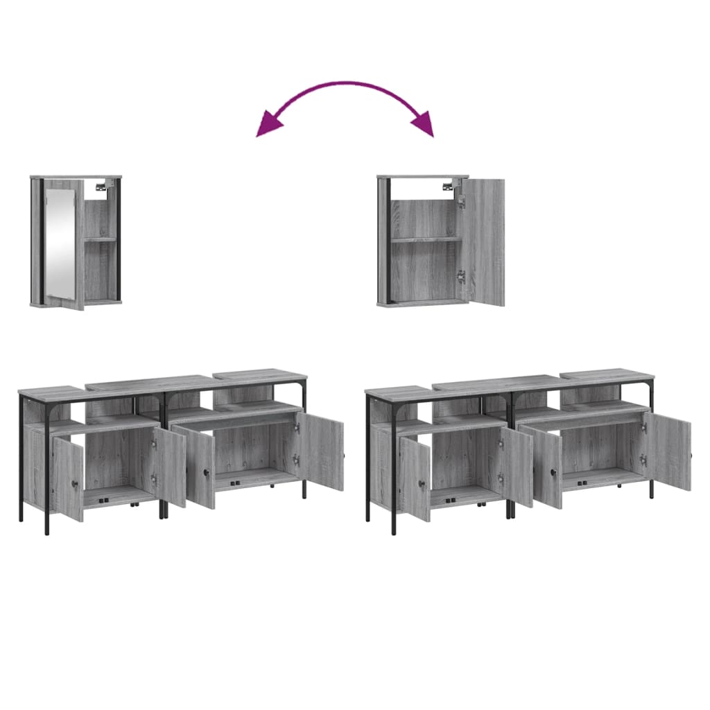 3 pcs Conjunto móveis casa de banho madeira proc. cinza sonoma