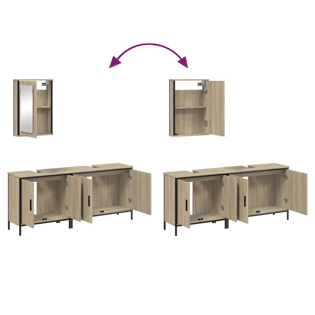 3 pcs conj. móveis casa banho derivados madeira carvalho sonoma