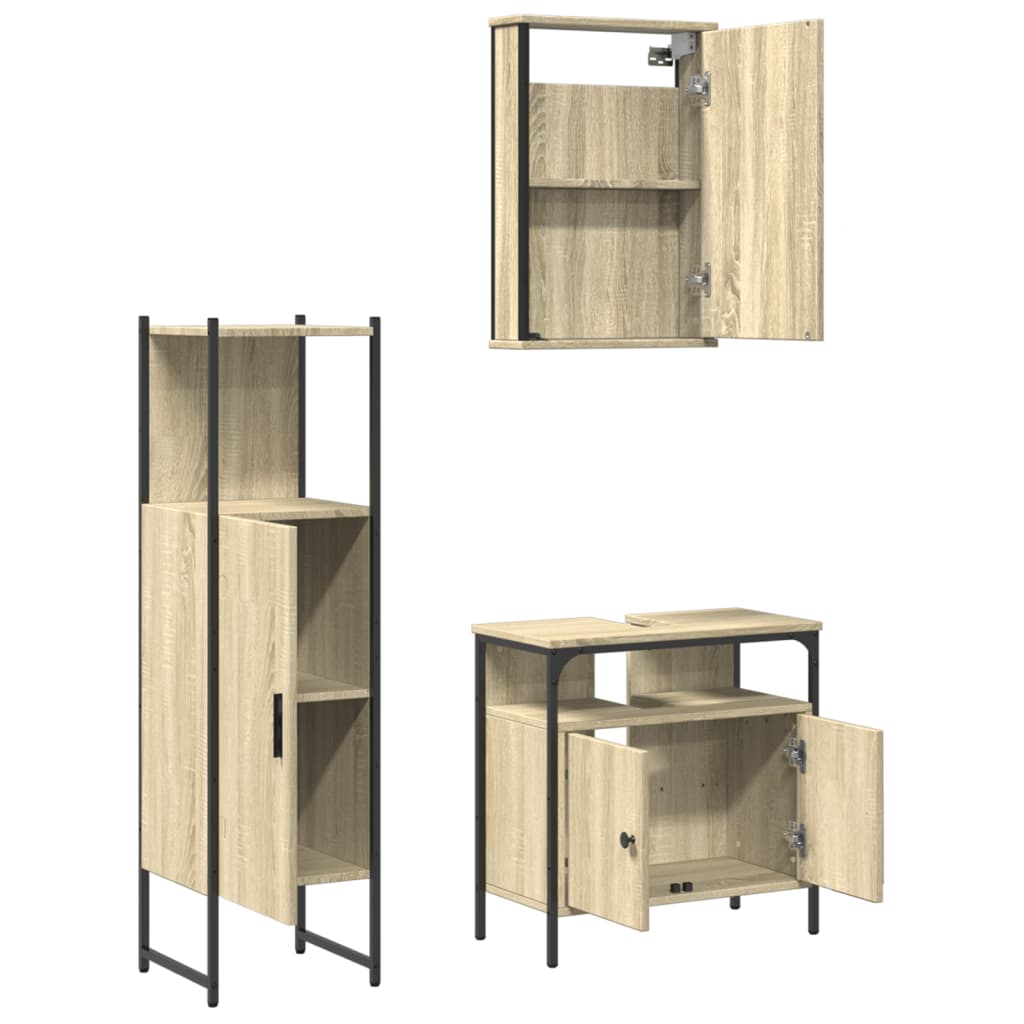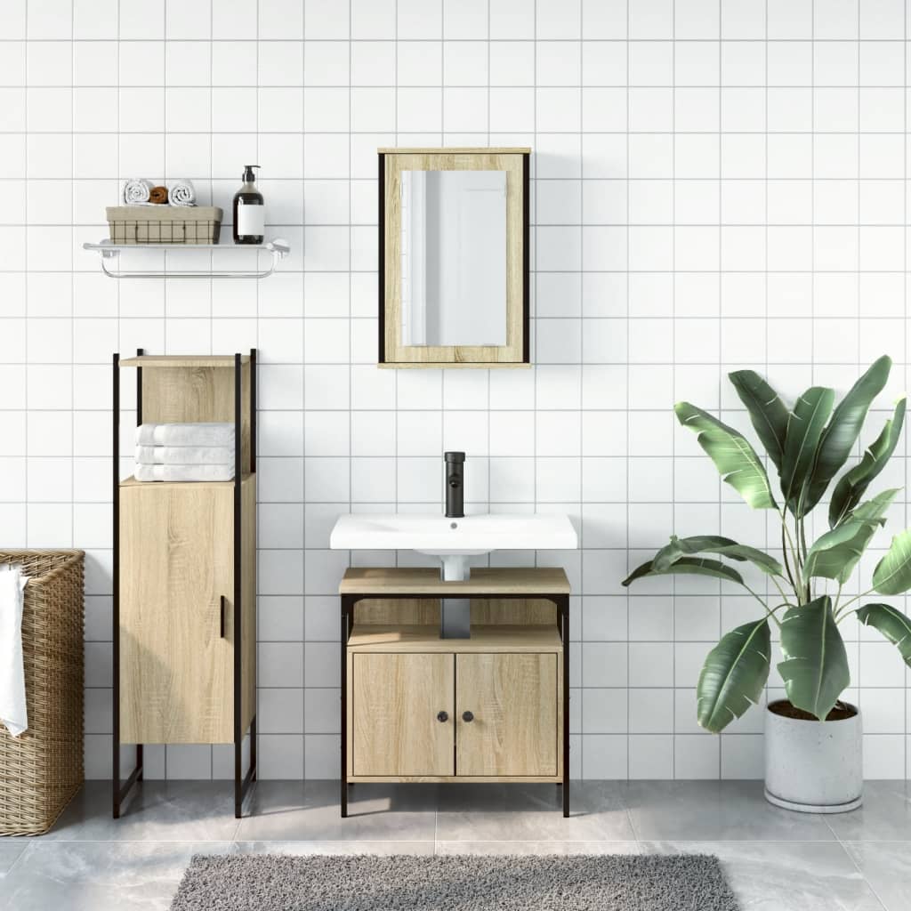 3 pcs conj. móveis casa banho derivados madeira carvalho sonoma