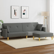 Sofá-cama de 2 lugares c/ apoio de pés tecido cinzento-escuro