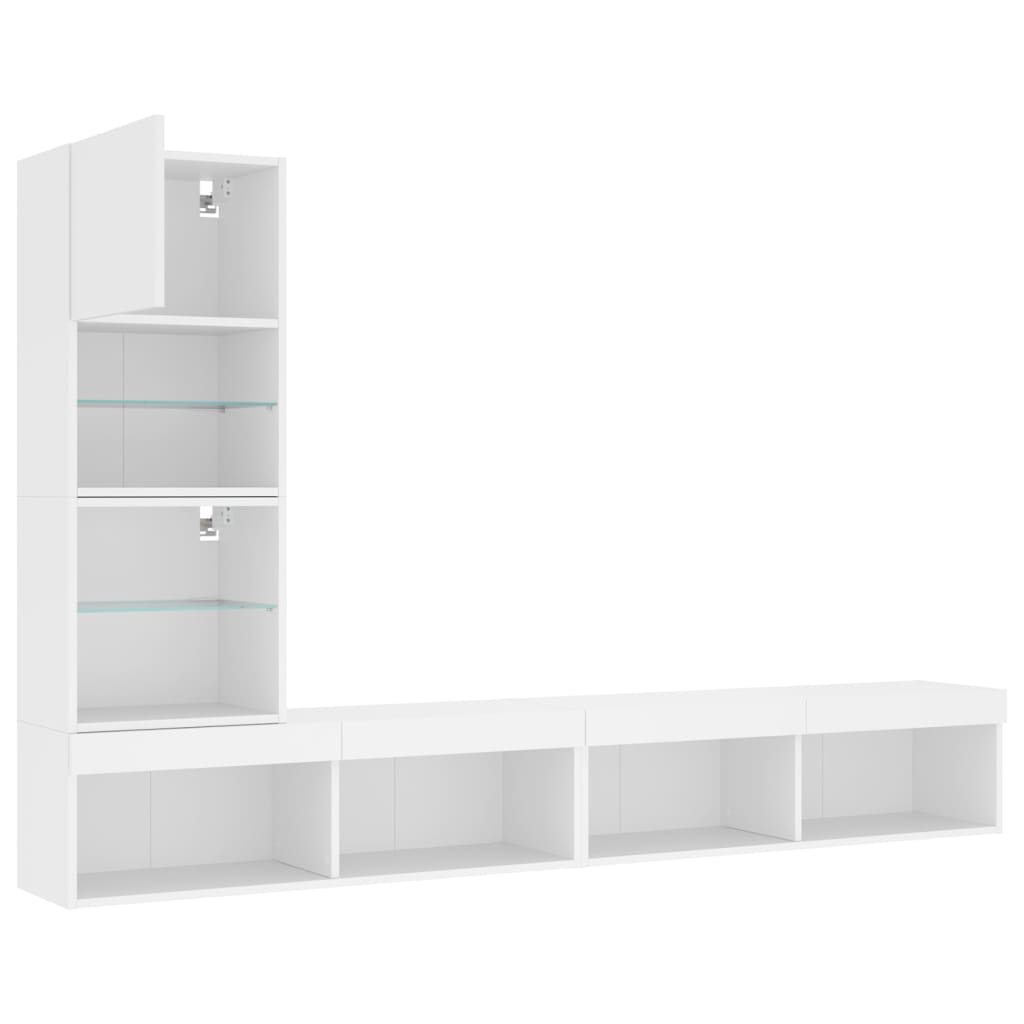 4pcs móveis de parede p/ TV c/ LEDs derivados de madeira branco