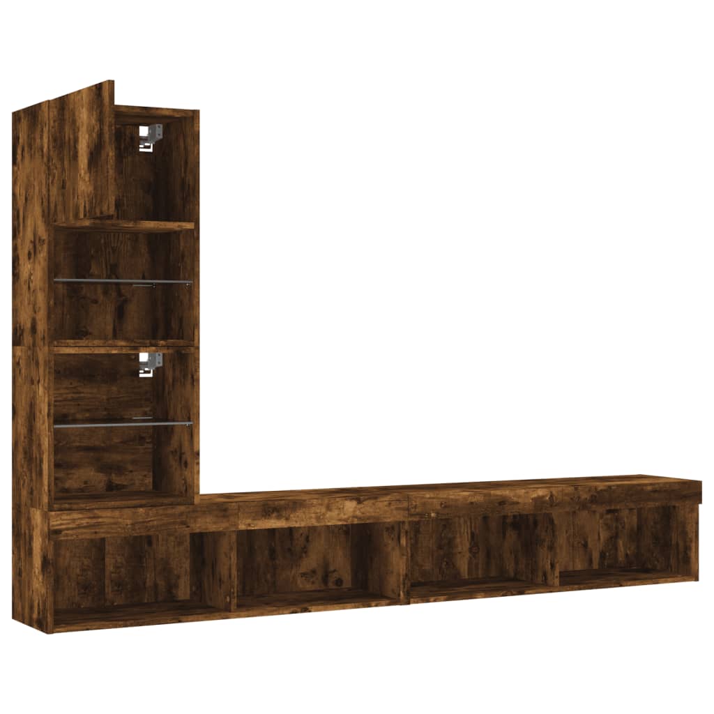 4pcs móveis parede p/ TV c/ LEDs deriv. madeira carvalho fumado