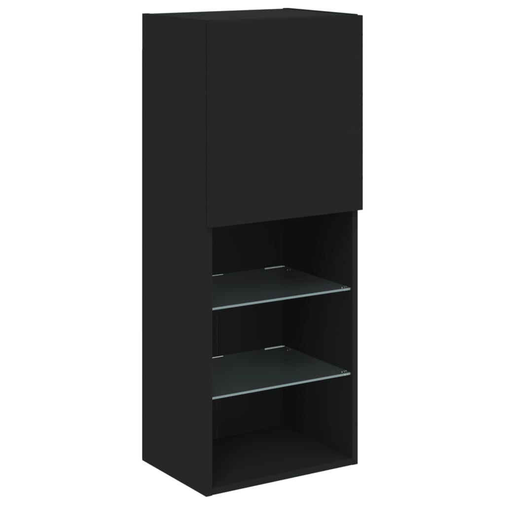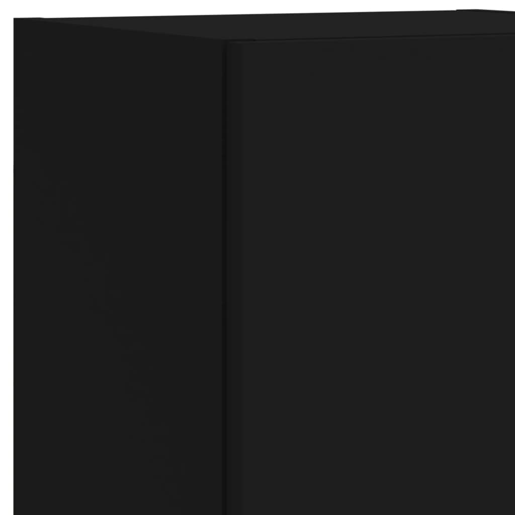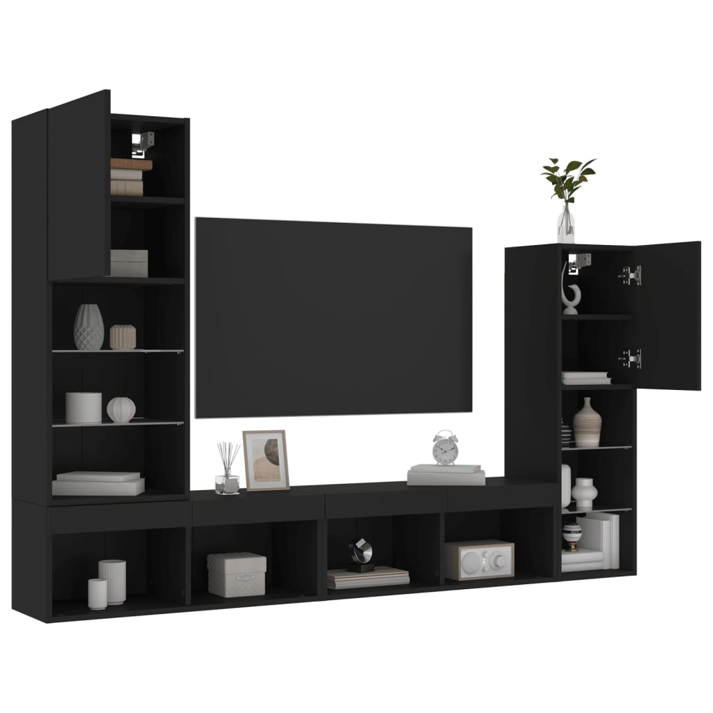 4 pcs móveis de parede p/ TV c/ LEDs derivados de madeira preto
