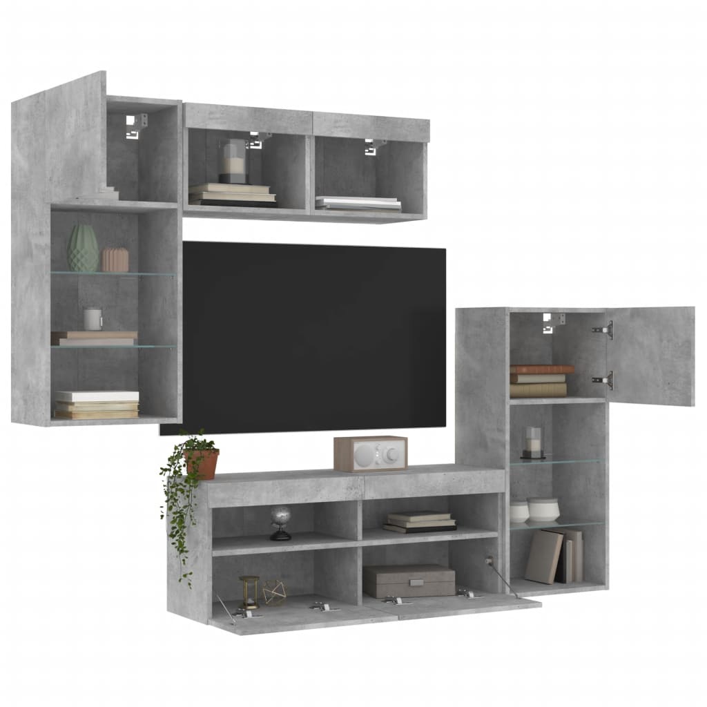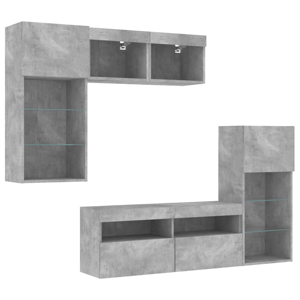 5 pcs móveis parede p/ TV c/ LEDs deriv. madeira cinza cimento