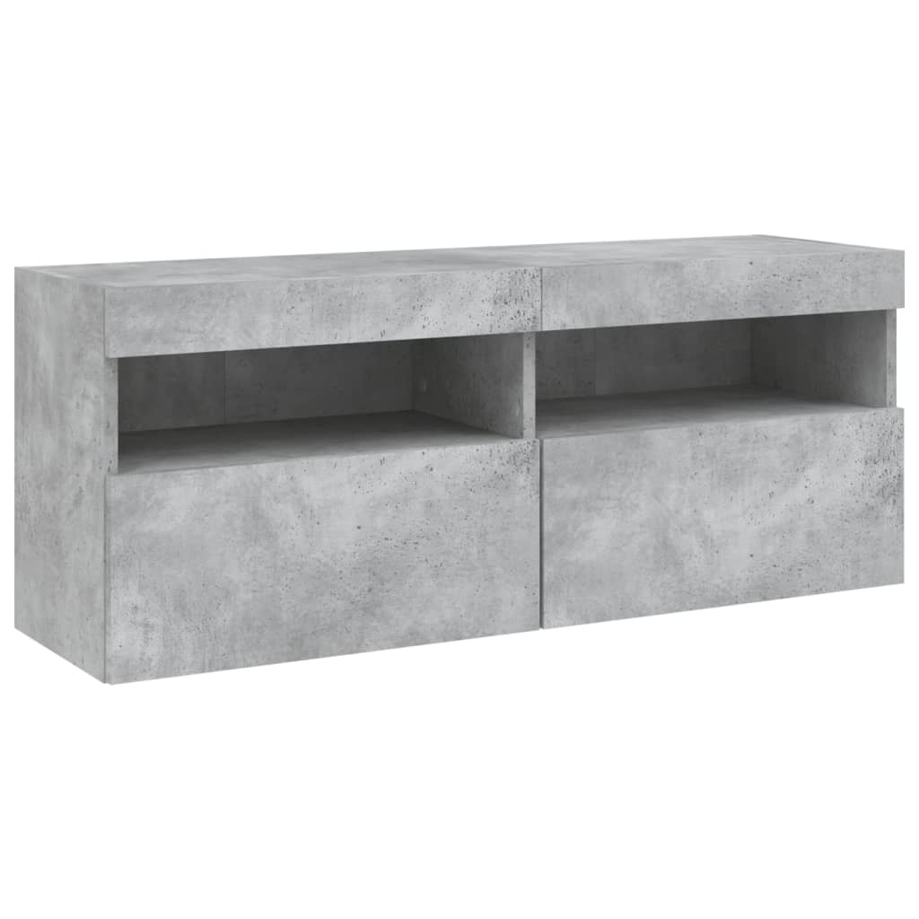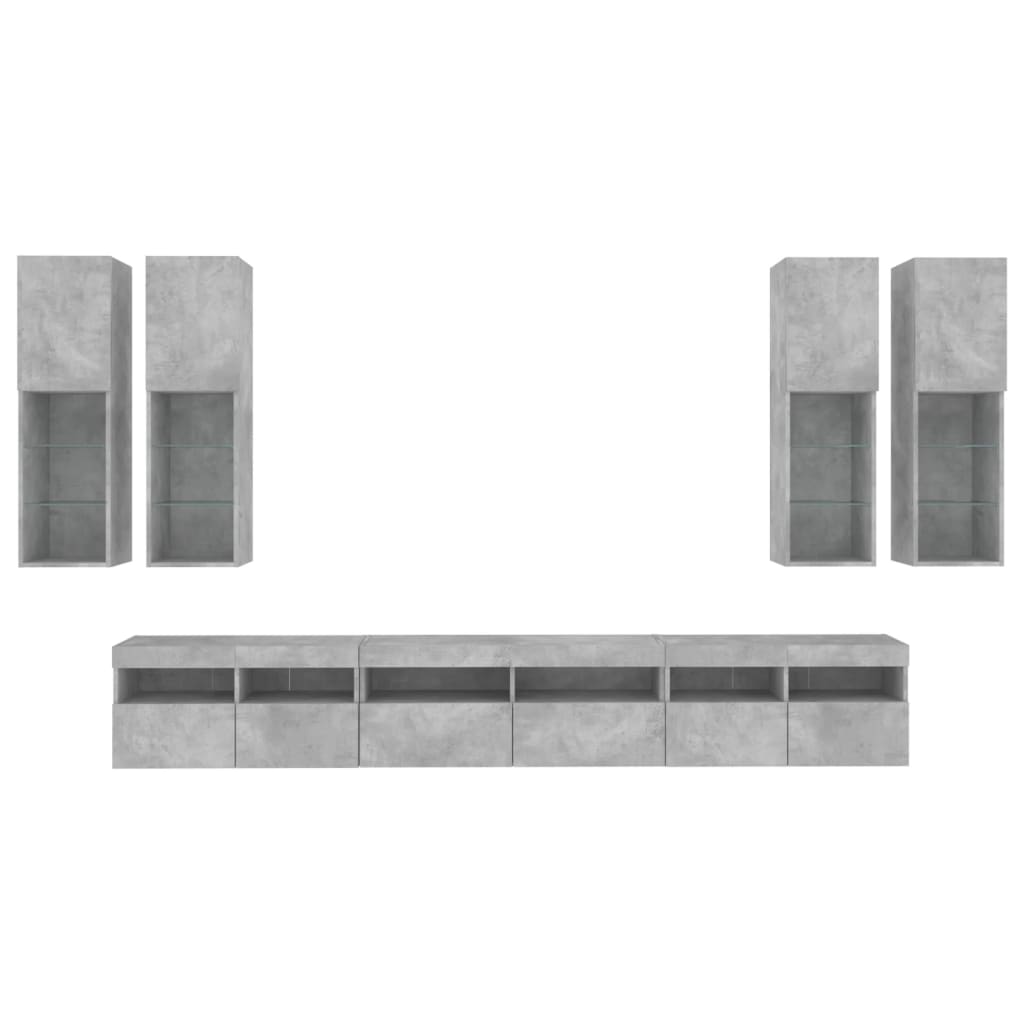 7 pcs conj. móveis de parede p/ TV luzes LED cinzento cimento