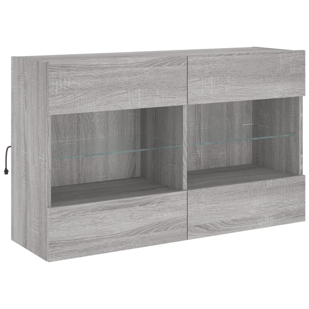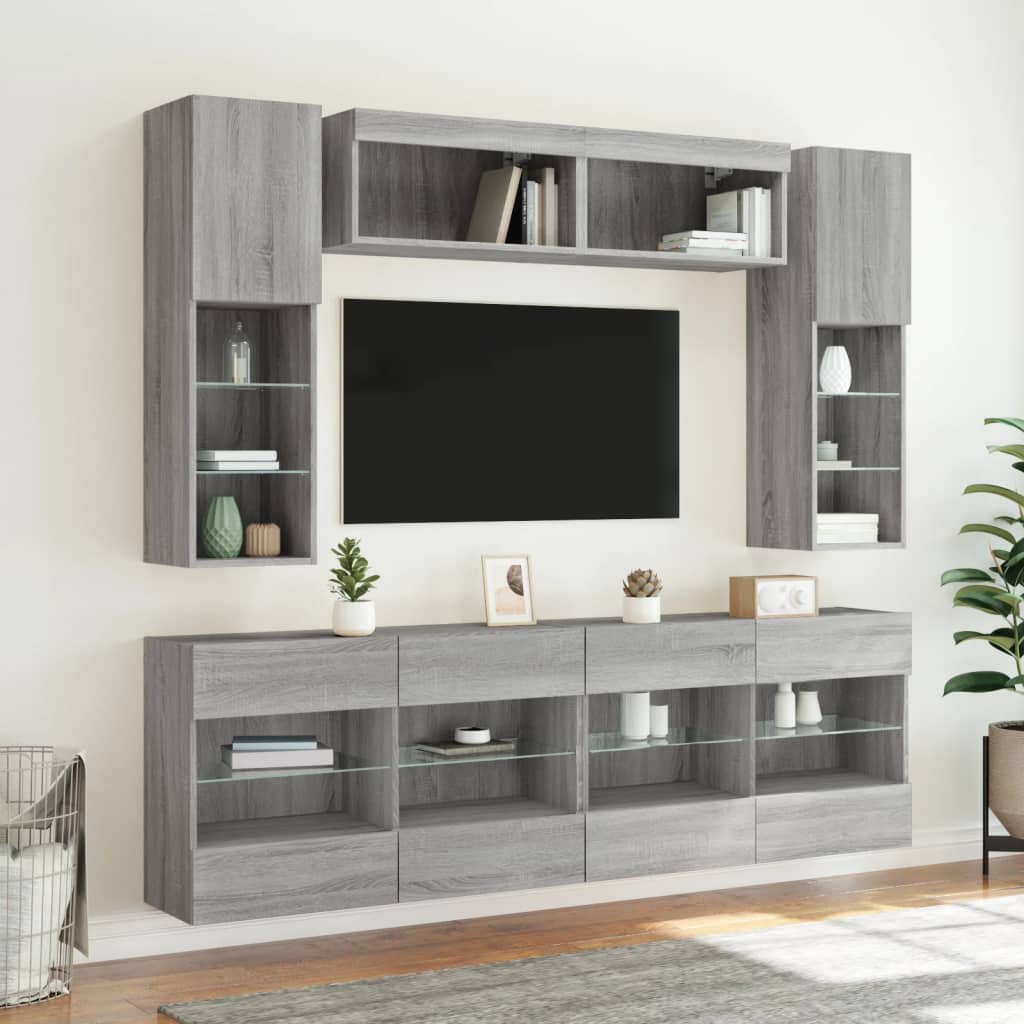 6 pcs conj. móveis de parede p/ TV c/ luzes LED cinzento sonoma