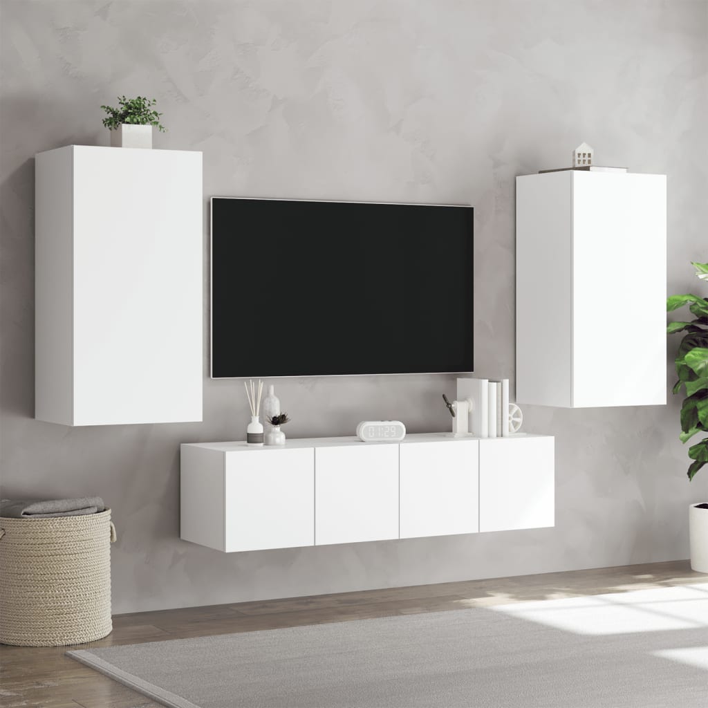 4pcs móveis de parede p/ TV c/ LEDs derivados de madeira branco