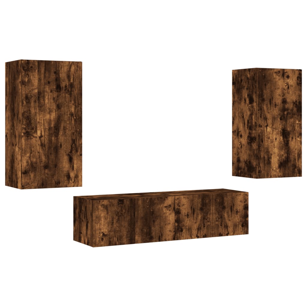 4pcs móveis parede p/ TV c/ LEDs deriv. madeira carvalho fumado