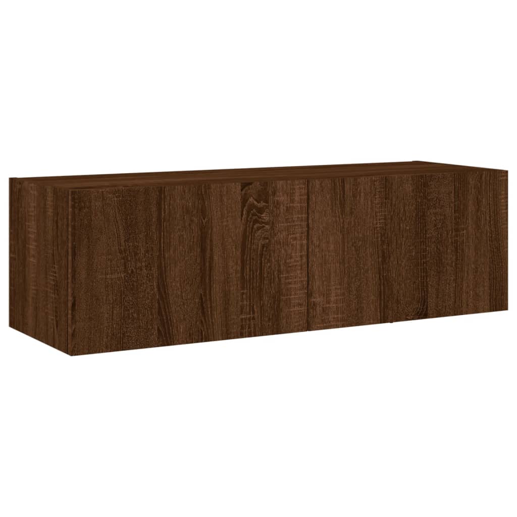 3 pcs móveis de parede para TV com luzes LED carvalho castanho