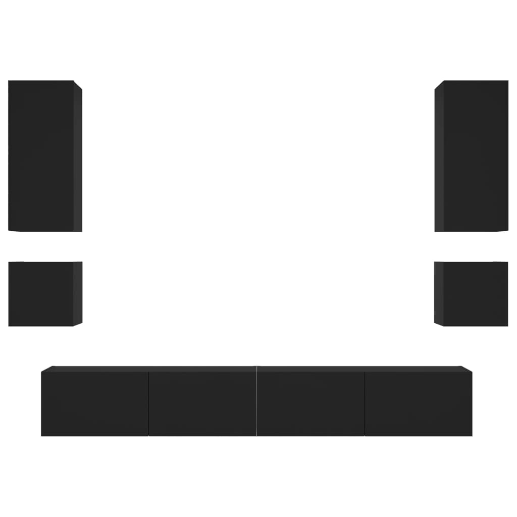 6 pcs móveis de parede para TV com luzes LED preto