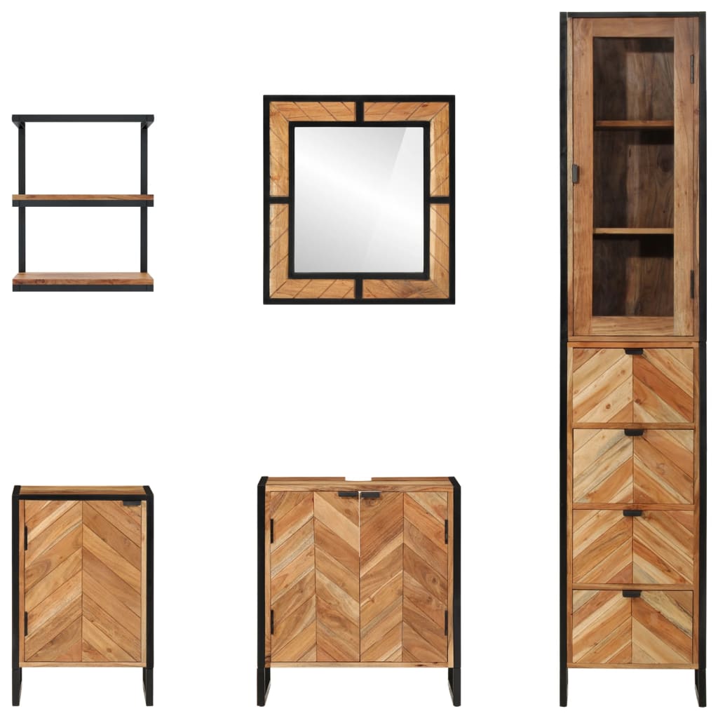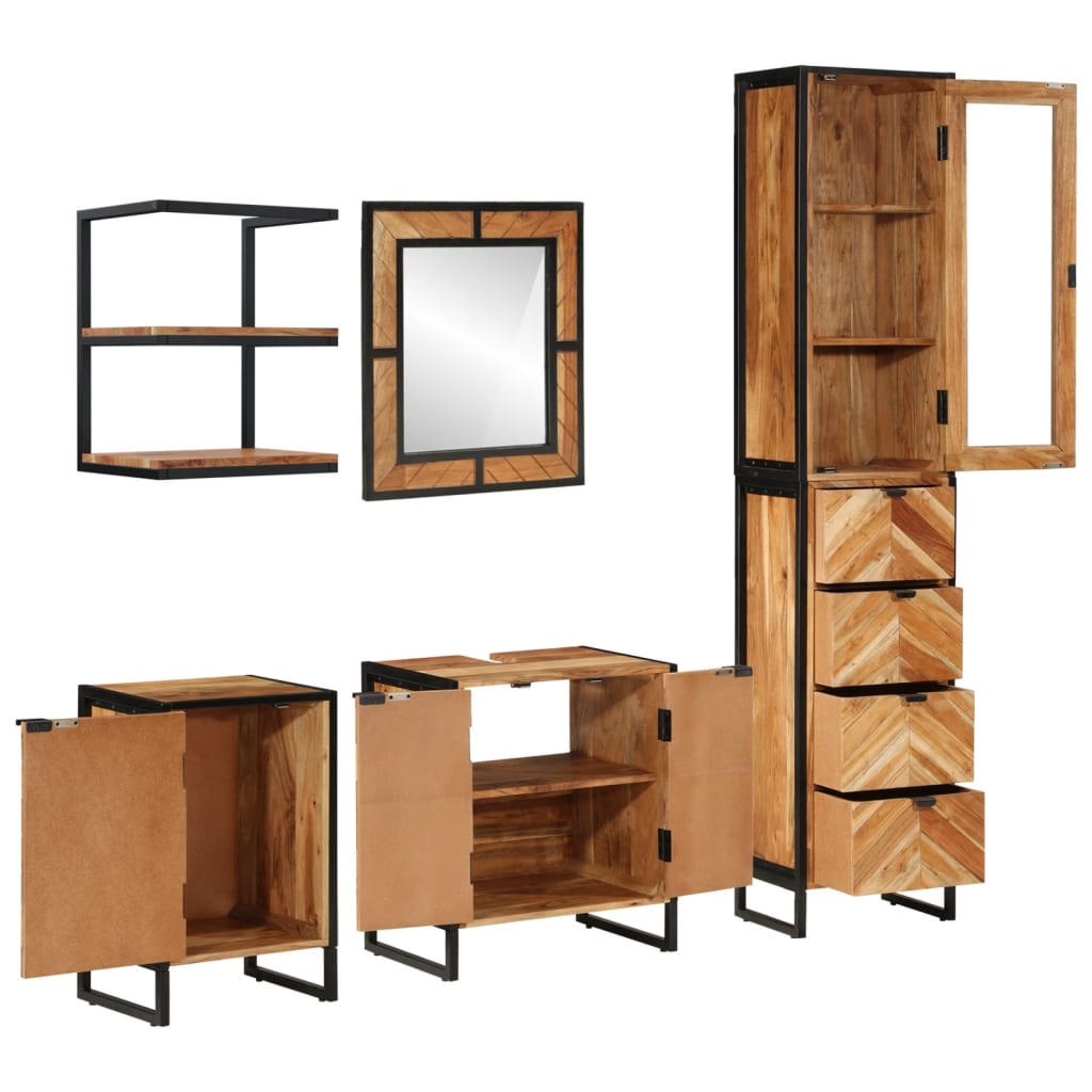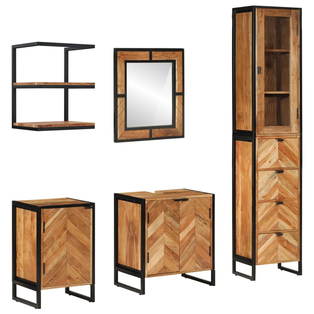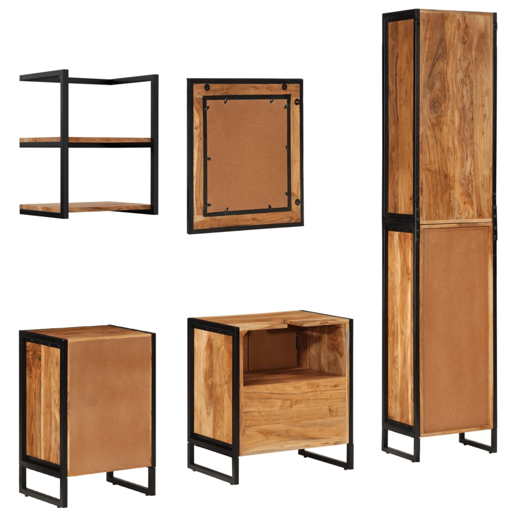 5 pcs conj. móveis p/ casa de banho ferro e acácia maciça