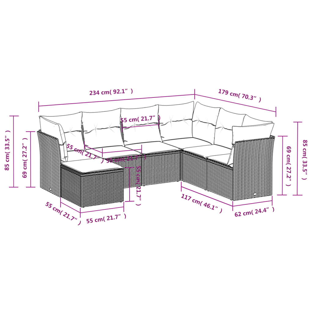 7 pcs conjunto de sofás p/ jardim c/ almofadões vime PE preto