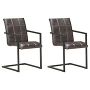 Cadeiras de jantar cantilever 2 pcs couro genuíno cinzento