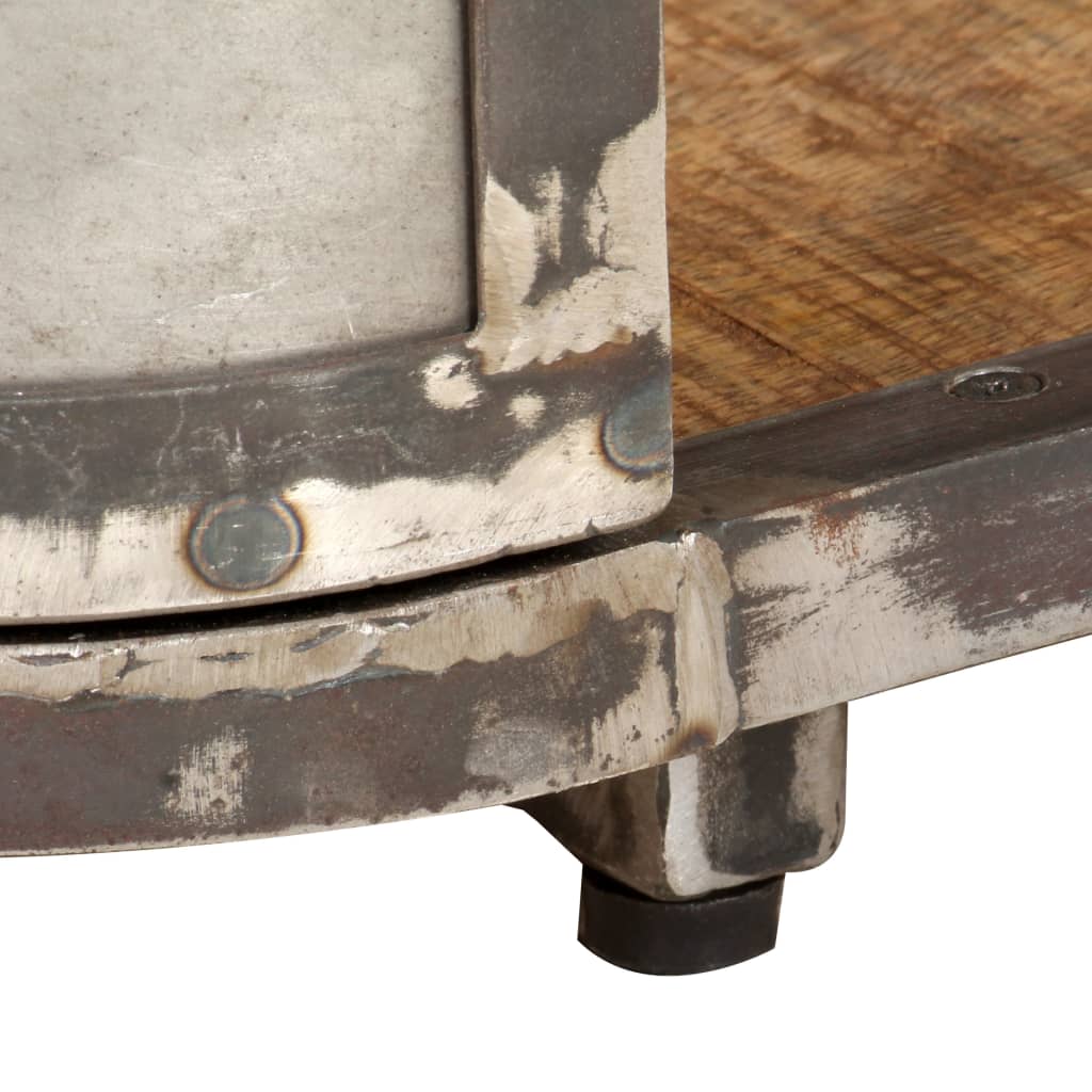 - Material: madeira de mangueira maciça com um acabamento natural, aço, ferro
