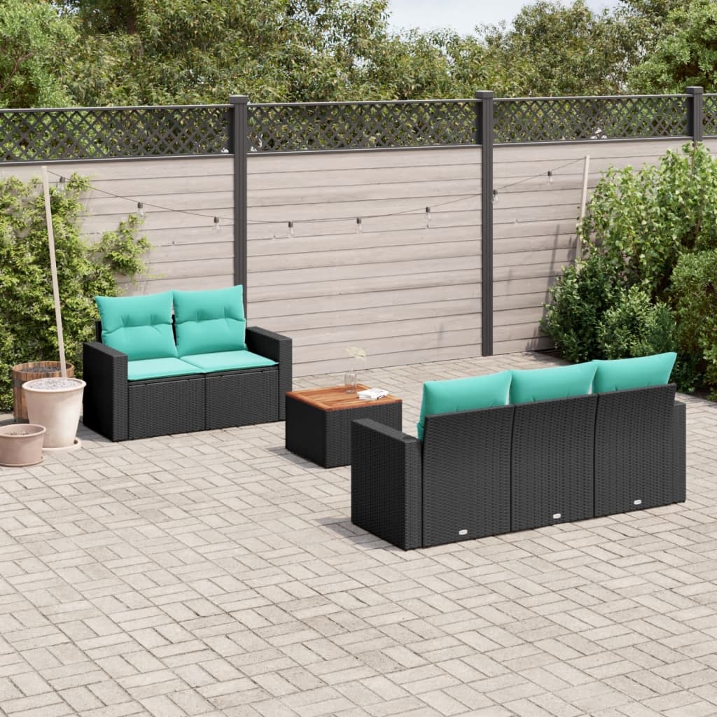 6 pcs conjunto de sofás p/ jardim c/ almofadões vime PE preto