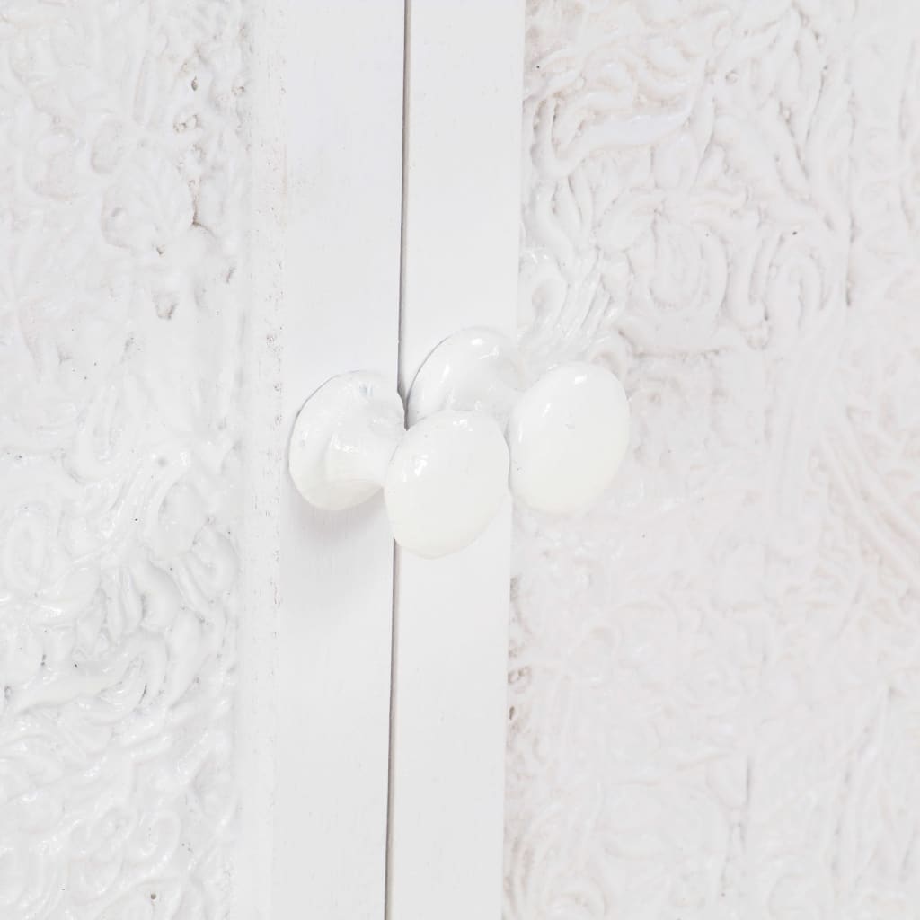 O armário de apoio é feito em madeira de mangueira maciça, uma madeira de lei tropical com resistência para suportar o peso. Também suporta o desgaste causado pelo tempo, tornando-o estável e durável. A estrutura de ferro revestido a pó atribui uma estabilidade adicional. Este armário possui duas portas, fornecendo um amplo espaço de arrumação. O tampo de madeira resistente é ideal para expor objetos decorativos tais como molduras, vasos com plantas, jarros etc.
