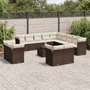 14 pcs conjunto sofás p/ jardim c/ almofadões vime PE castanho