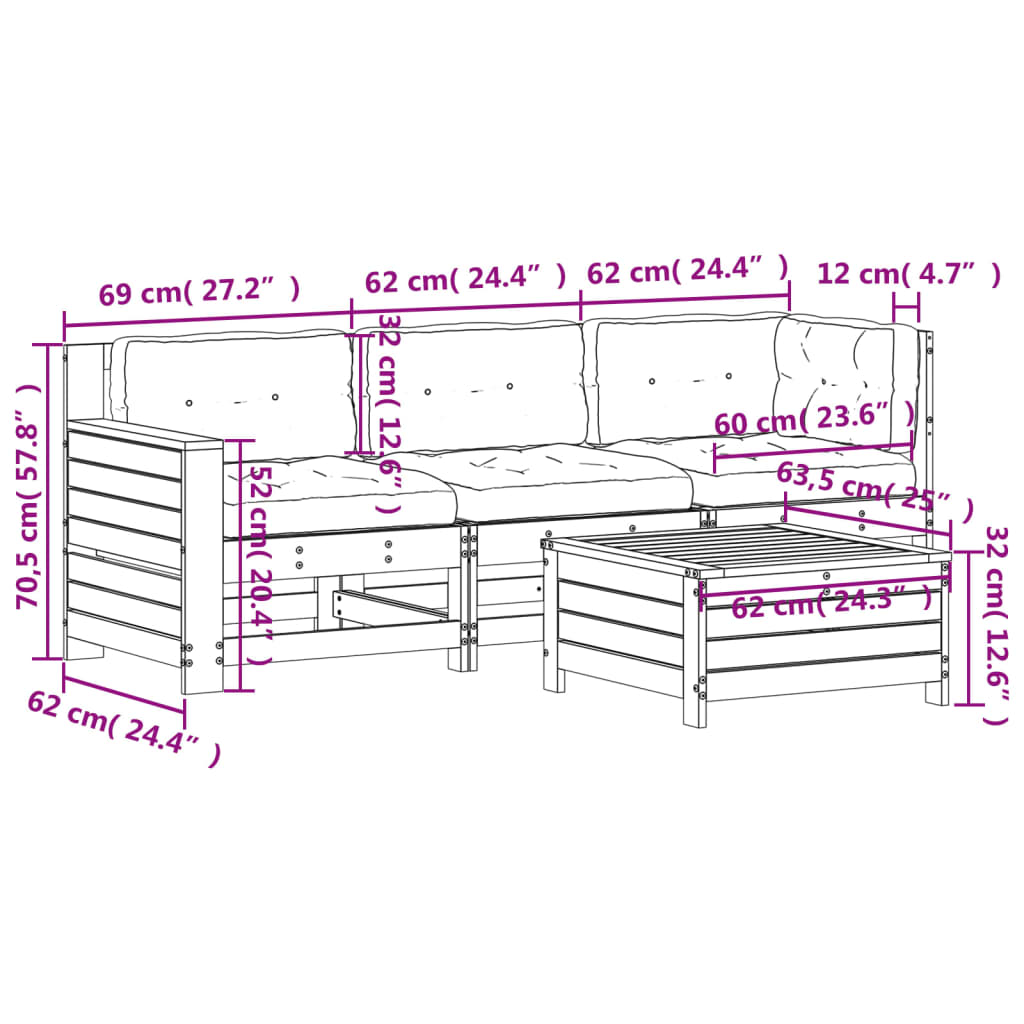 4 pcs conj. lounge jardim com almofadões madeira douglas maciça