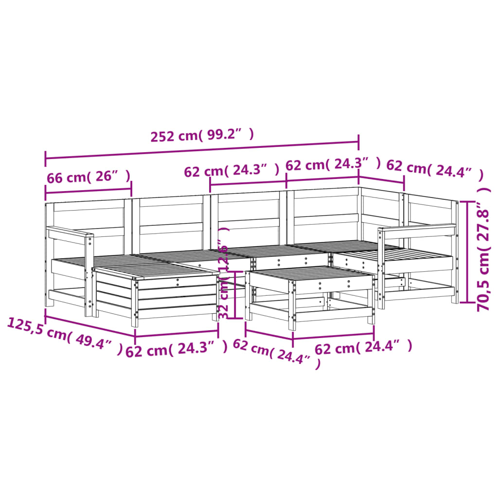 7 pcs conjunto de sofás para jardim pinho maciço branco