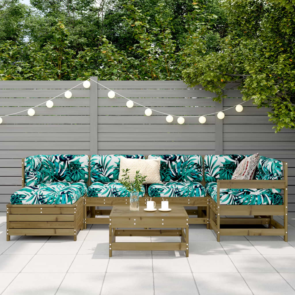 7 pcs conjunto sofás jardim madeira de pinho impregnada