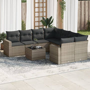 9 pcs conjunto sofás p/ jardim com almofadões vime PE cinzento