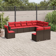 10 pcs conj. sofás jardim com almofadões vime PE castanho