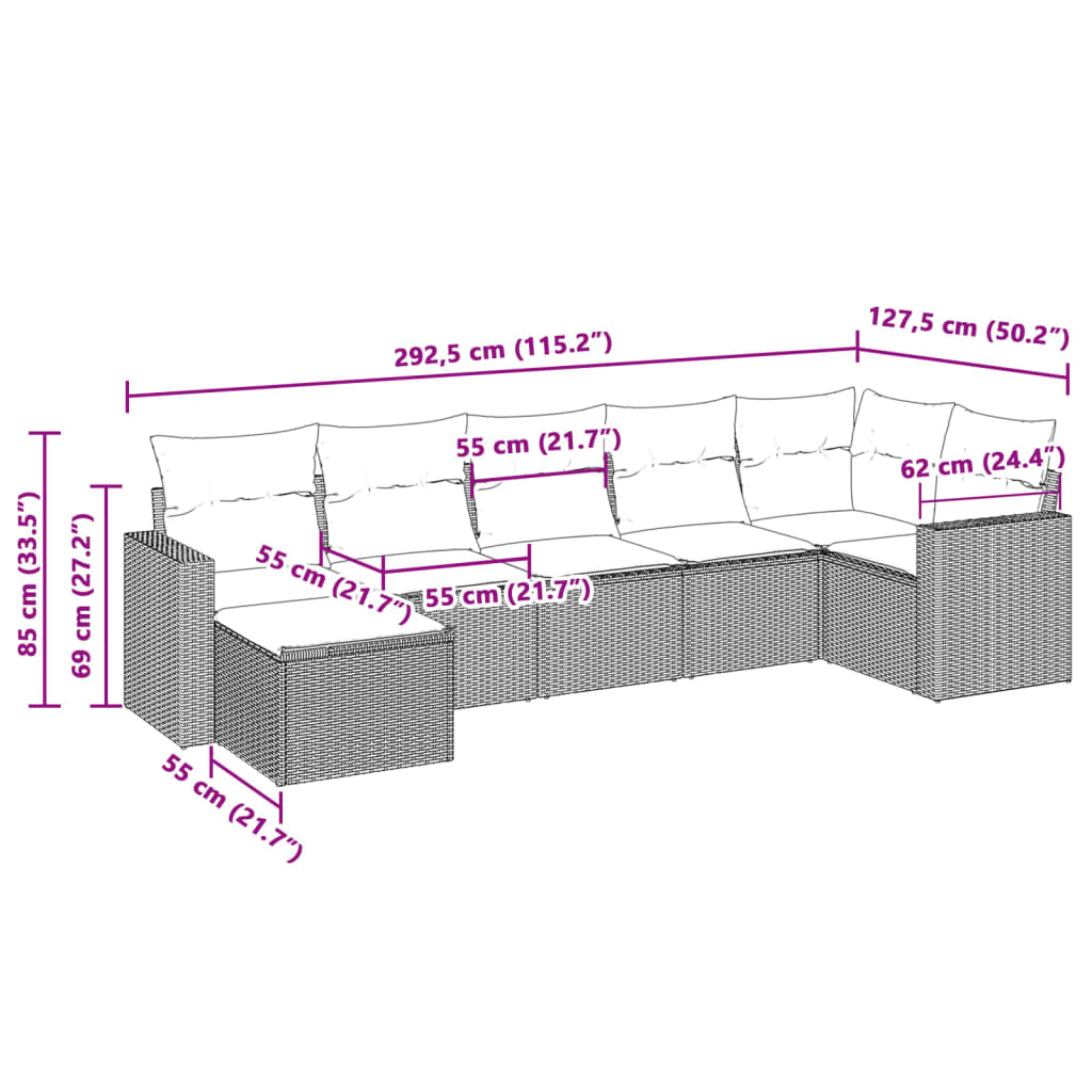 7 pcs conj. sofás jardim com almofadões vime PE cinzento-claro