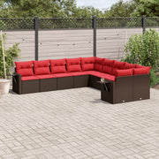 10 pcs conj. sofás jardim com almofadões vime PE castanho