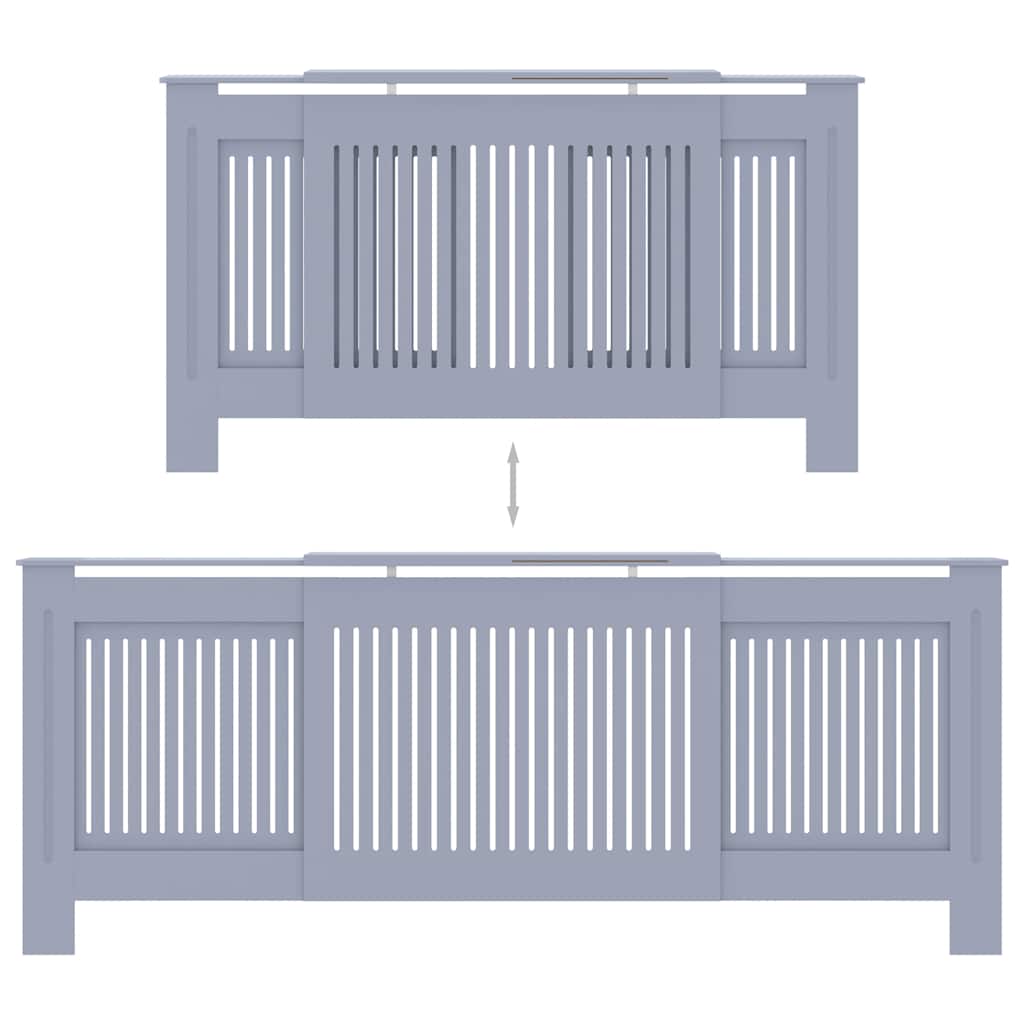 Esta estrutura para cobertura de radiador é feita em MDF robusto e durável. Apresenta um design moderno e ripado, tornando-a adequada para qualquer decoração. A prateleira fornece espaço amplo para colocar os seus livros, molduras, enfeites etc.