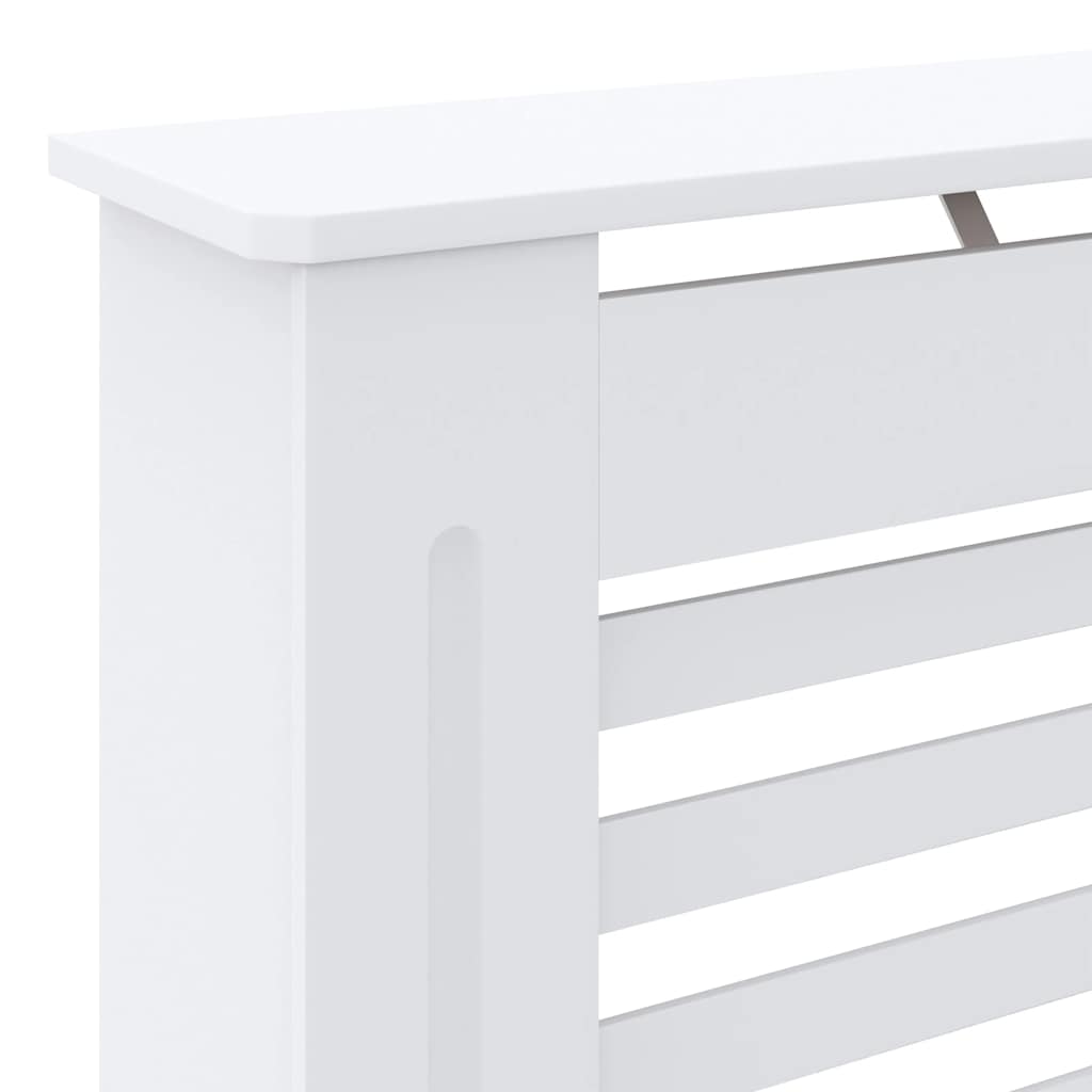 Esta estrutura para cobertura de radiador é feita em MDF robusto e durável. Apresenta um design moderno e ripado, tornando-a adequada para qualquer decoração. A prateleira fornece espaço amplo para colocar os seus livros, molduras, enfeites etc.