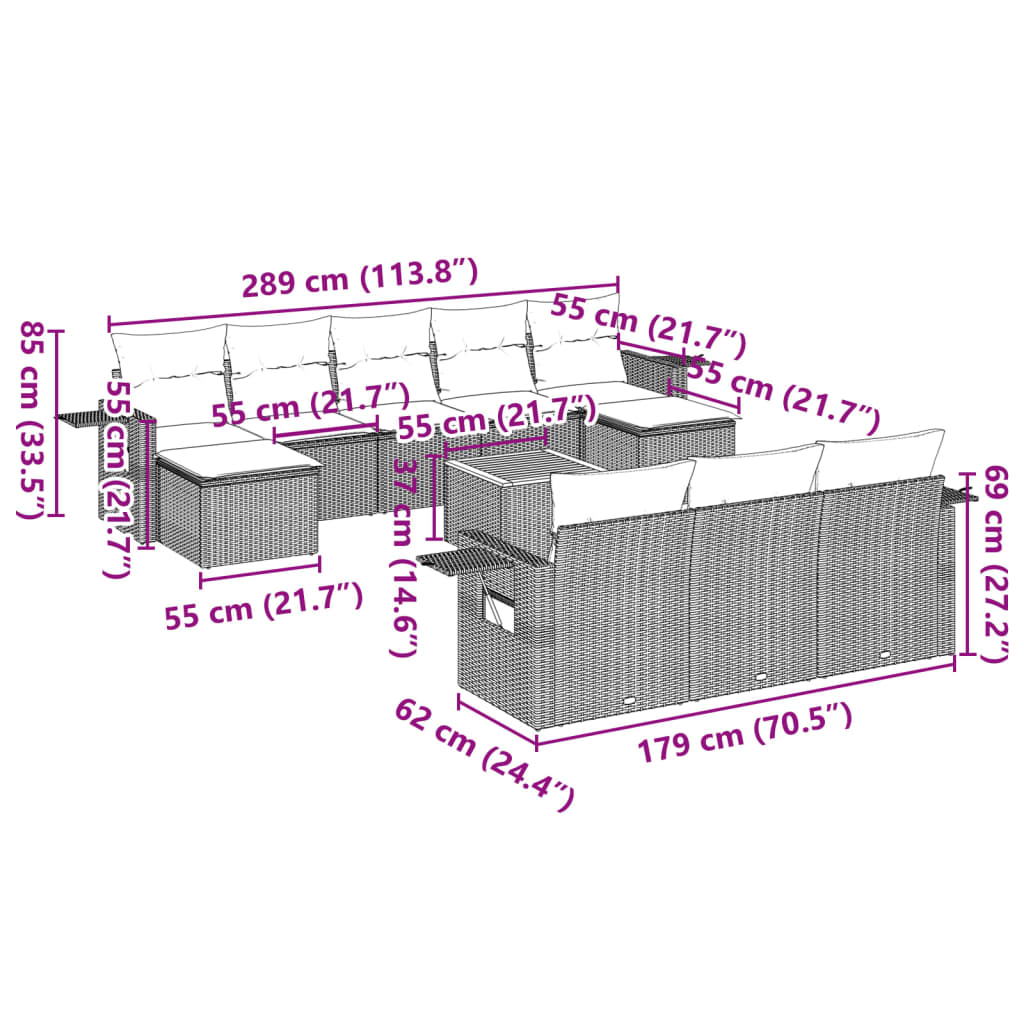 11 pcs conjunto sofás de jardim c/ almofadões vime PE preto