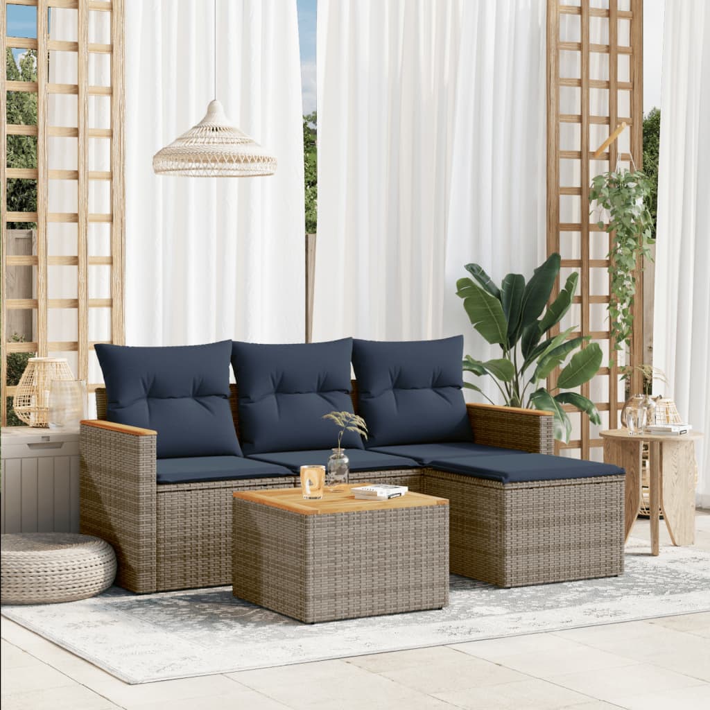 5 pcs conjunto sofás p/ jardim c/ almofadões vime PE cinzento