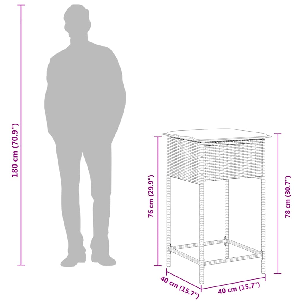 3 pcs conjunto de bar p/ jardim c/ almofadões vime PE cinzento