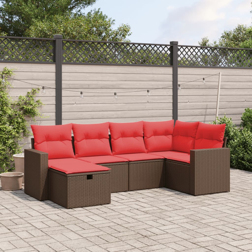 6 pcs conjunto de sofás jardim c/ almofadões vime PE castanho