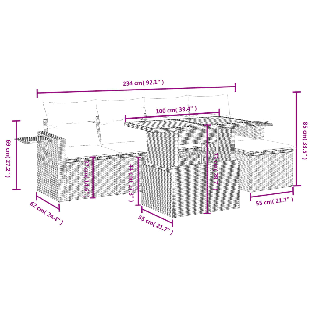 6 pcs conjunto sofás de jardim c/ almofadões vime PE preto