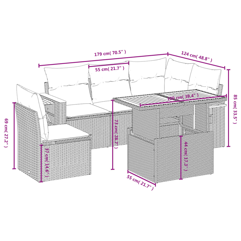 6 pcs conjunto de sofás p/ jardim c/ almofadões vime PE preto
