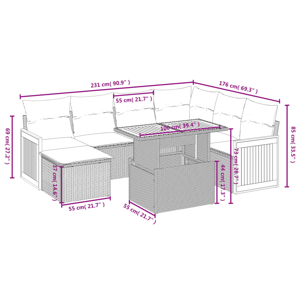 8 pcs conjunto de sofás p/ jardim c/ almofadões vime PE preto
