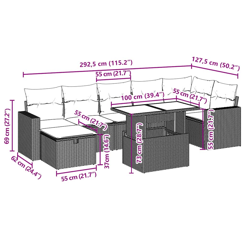 8 pcs conjunto de sofás p/ jardim com almofadões vime PE bege