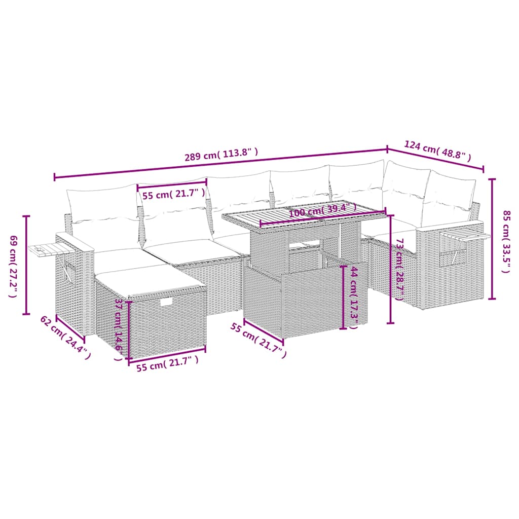 8 pcs conjunto sofás de jardim com almofadões vime PE preto