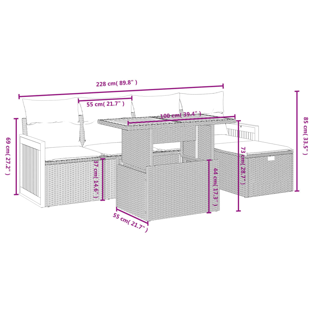 6 pcs conjunto sofás de jardim c/ almofadões vime PE preto