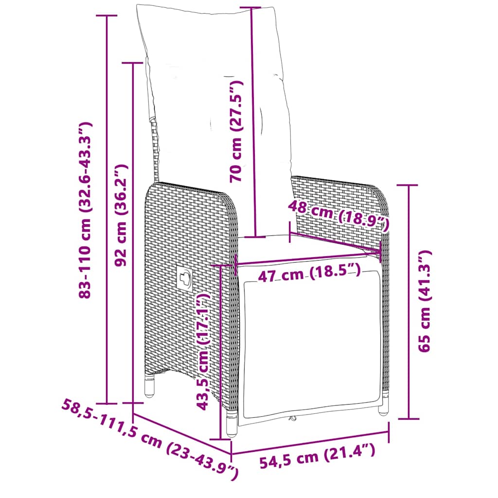 - 2 x Cadeira de jardim reclinável com apoio para os pés