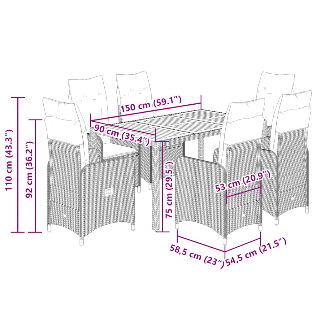 7 pcs conjunto bistrô de jardim c/ almofadões vime PE cinza