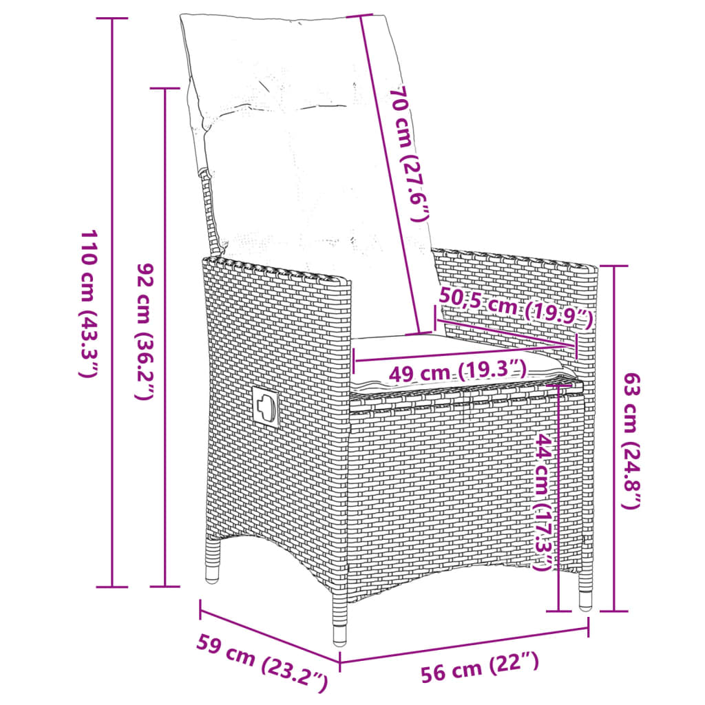 11 pcs conjunto de bistrô p/ jardim c/ almofadões vime PE bege
